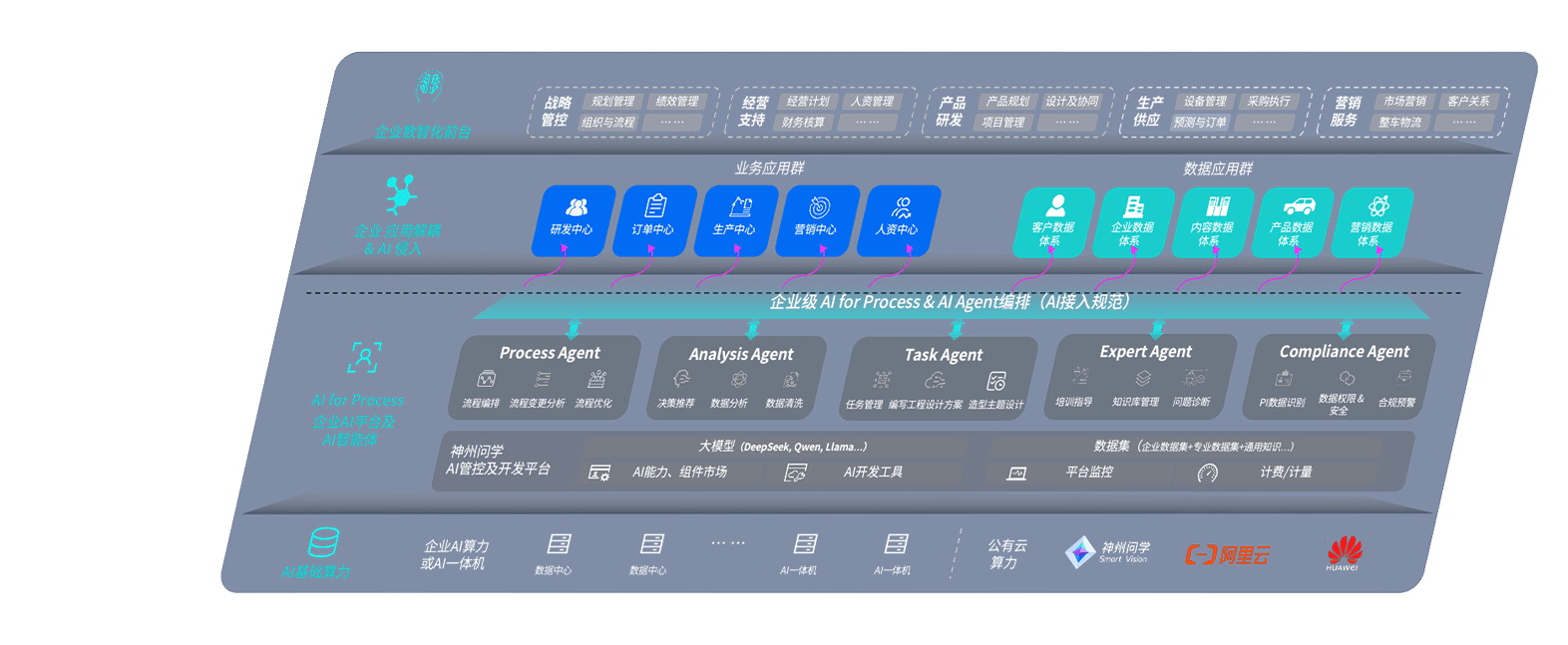 端到端的一站式AI工作空间深度融合了从企业战略规划到日常经营的全流程业务板块,,,,定向解决车企内部领域多、、、、部门多、、、、链条长、、、、场景碎片化等难题,,支持车企快速构建以AI为核心的生产力写作体系,,实现任务执行与AI能力的无缝集成与交互